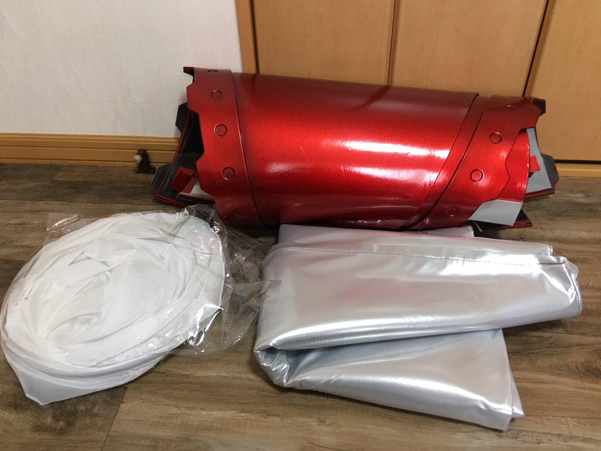 これね。スカートはバラして丸める。他の防具も開けるように。持ち運びが最優先なのでスカートはワイヤーパニエが骨格です。シルバー部分は裏地がカネフォームでハリをもたせてなんとか
