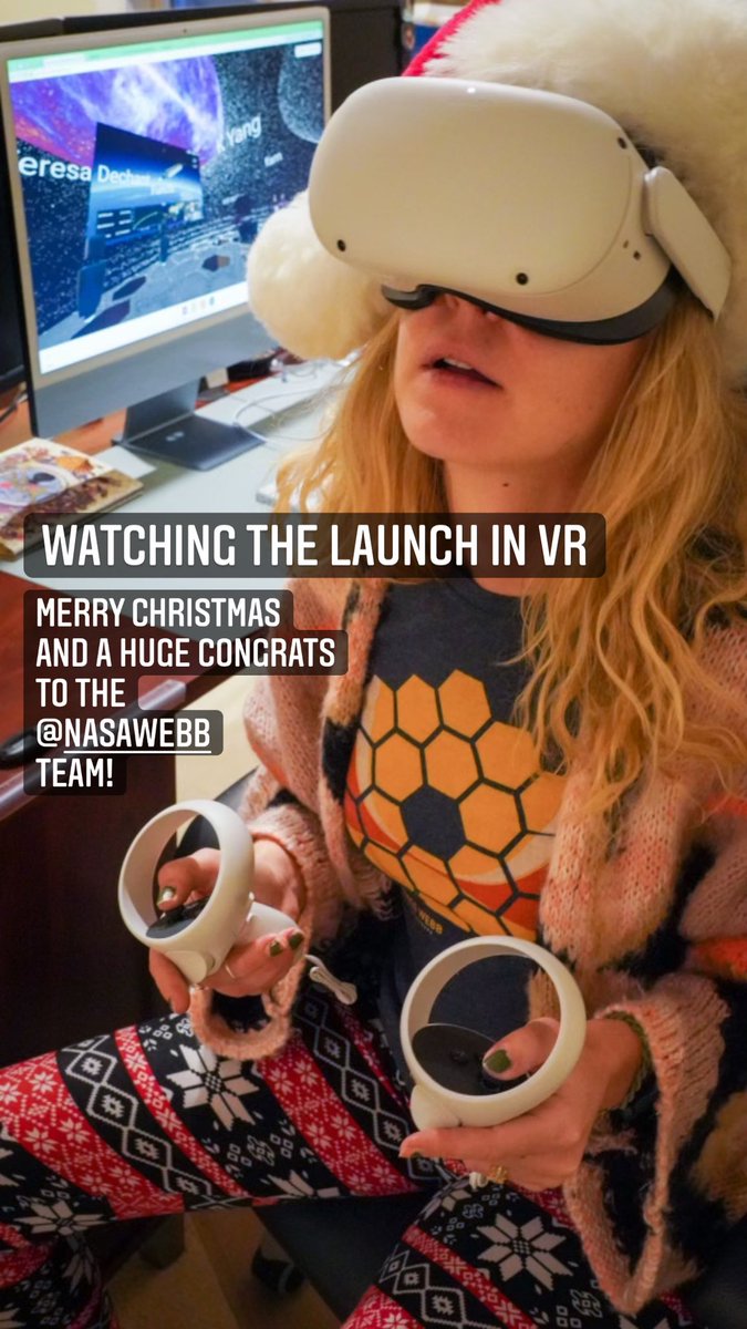 #jameswebbspacetelescope team on a successful launch! Please visit my VR world in commemoration and collaboration with the@NASAWebb team! GO WEBB! and Merry Christmas! https://hubs.mozilla.com/ZJVVout Here is a pic of us watching the launch in the VR world!pic.twitter.com/32dSp38x5a