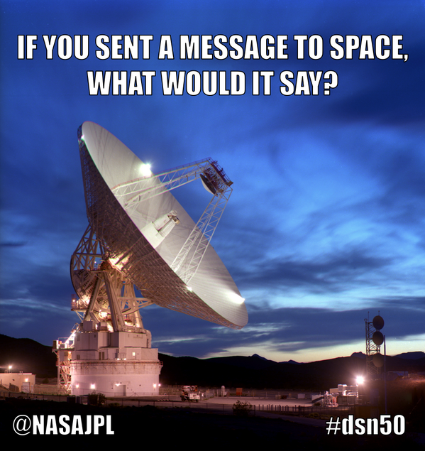 @NASAJPL: If you could send a message to space, what would it say?#dsn50 pic.twitter.com/iESypvGymy” Walt dies at the end