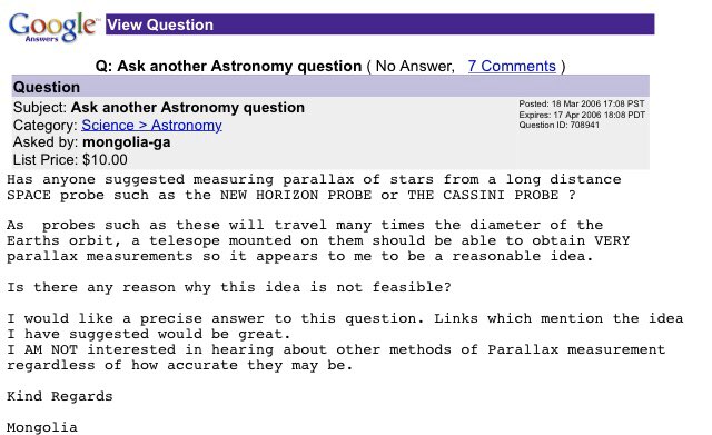 It never occurred to me that you could use a probe to extend the parallax baseline, makes the project really cool. Curious to know when the idea was suggested as I found this post dated a few months after NH launch asking if it was even possible, but now we know it’s happening!pic.twitter.com/4wARPdPiYe