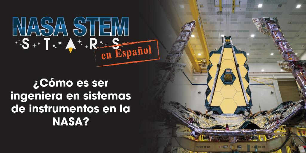 ¡El nuevo episodio de #NASASTEM Stars es en español! Únanse a la Dra. Begoña Vila, Ingeniera de Sistemas de Instrumentos, hoy a las 2 pm EDT para hablar sobre la ciencia e ingeniería del #NASAWebb: https://go.nasa.gov/3fdQDIB pic.twitter.com/5yU4wE65rZ