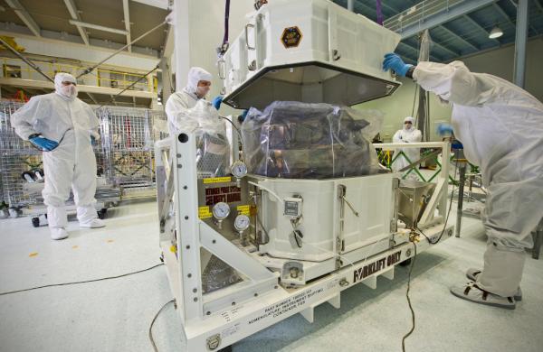 The Canadian Space Agency's FGS/NIRISS arrived @NASA Goddard on July 30.Techs are removing 1st half of shipping case.pic.twitter.com/aV3rhnFu