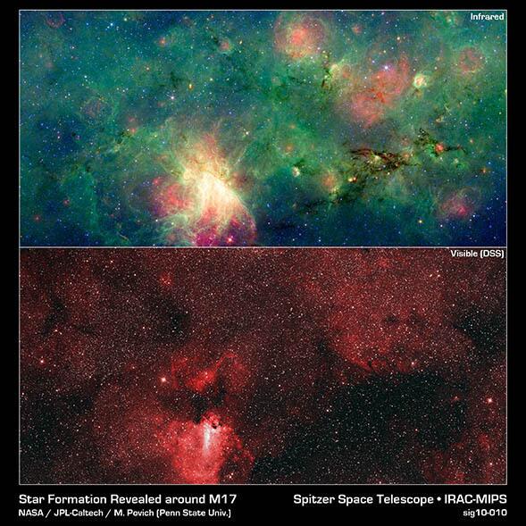 Infrared light reveals an invisible "dragon" in this nebula, which is also a stellar nursery: http://go.nasa.gov/18c6C07 pic.twitter.com/U5hODArGad