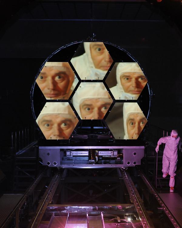 #throwbackthursday to cryogenic testing on #JWST's mirrors. Observatory scientist Mark Clampin is reflected. #tbtpic.twitter.com/VsrlGl1XSO