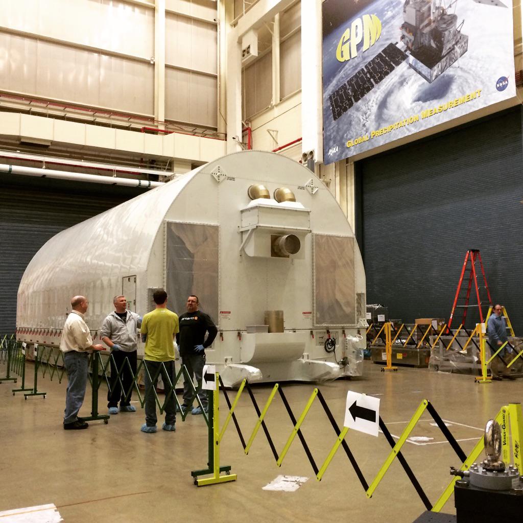 This huge #JWST packing case soon going into the cleanroom. Keep an eye on the webcam: http://jwst.nasa.gov pic.twitter.com/JvFvGA1pqe