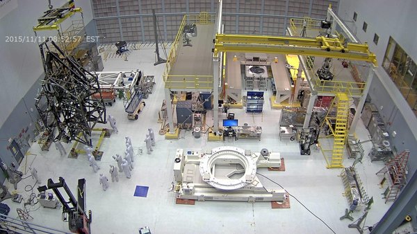 Lots of activity in our cleanroom this morning, including crane lifts of flight hardware! http://jwst.nasa.gov pic.twitter.com/4J1GdADgUK