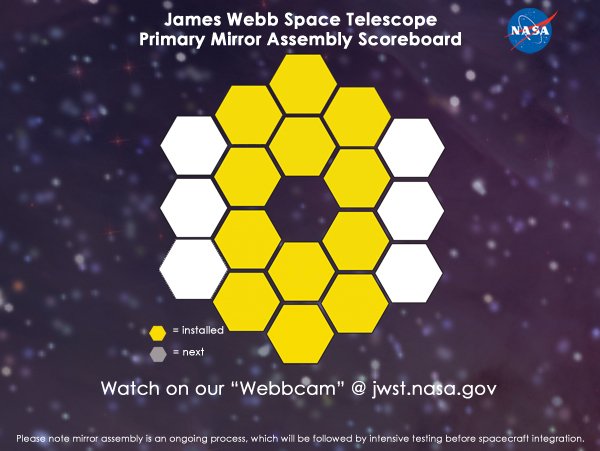 The 12th #JWST mirror is installed - which means the center section is done! Next up are the wings! #MirrorSeasonpic.twitter.com/XMc9jvu6t2