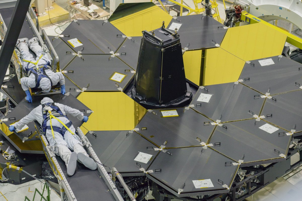 Inside the cleanroom earlier today, #JWST mirrors being uncovered @NASAGoddard in prep for instrument installation.pic.twitter.com/xHM5UOGXOq