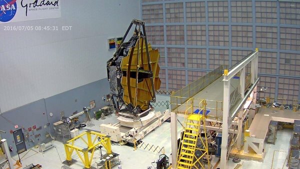 #JWST upright again in our cleanroom at @NASAGoddard! Watch on our Webbcam: http://jwst.nasa.gov/webcam.html pic.twitter.com/ehbHhCpYCJ