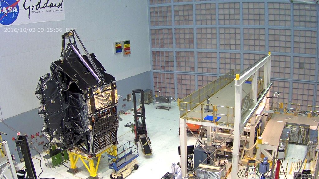 Keep an eye on the Webbcam today - a lift and rotation of #JWST will be happening: http://jwst.nasa.gov/webcam.html pic.twitter.com/aJoKh7ZQch