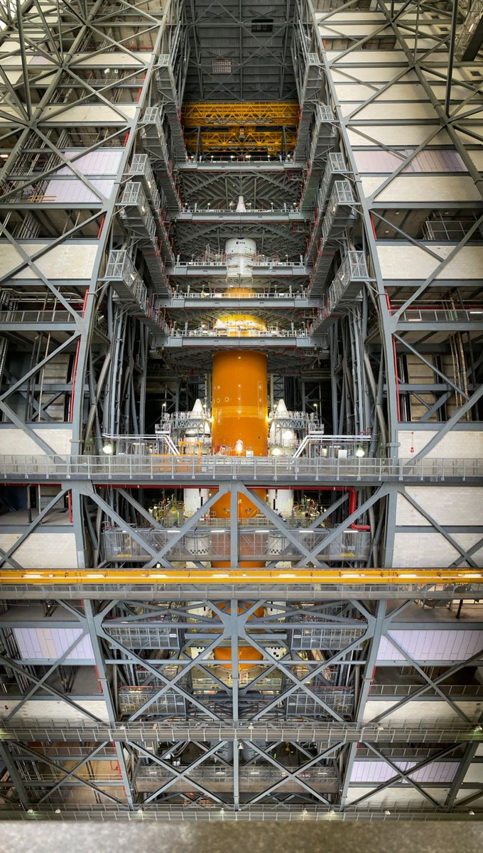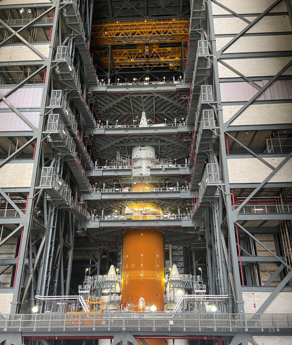 @NASA_SLS rocket and@NASA_Orion spacecraft in High Bay 3 of the Vehicle Assembly Building at@NASAKennedy in Florida. We will continue to share photos of the completed vehicle from time to time.