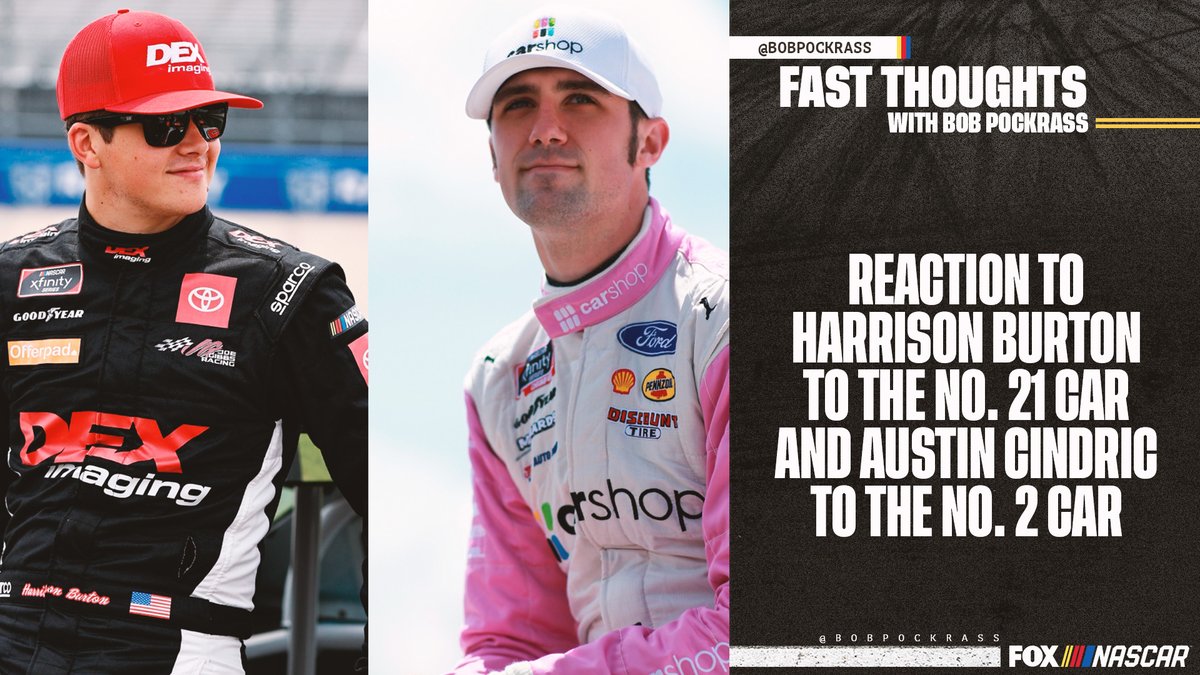 Harrison Burton to the No. 21 car. Austin Cindric to the No. 2 car. Matt DiBenedetto is a free agent. Fast Thoughts with