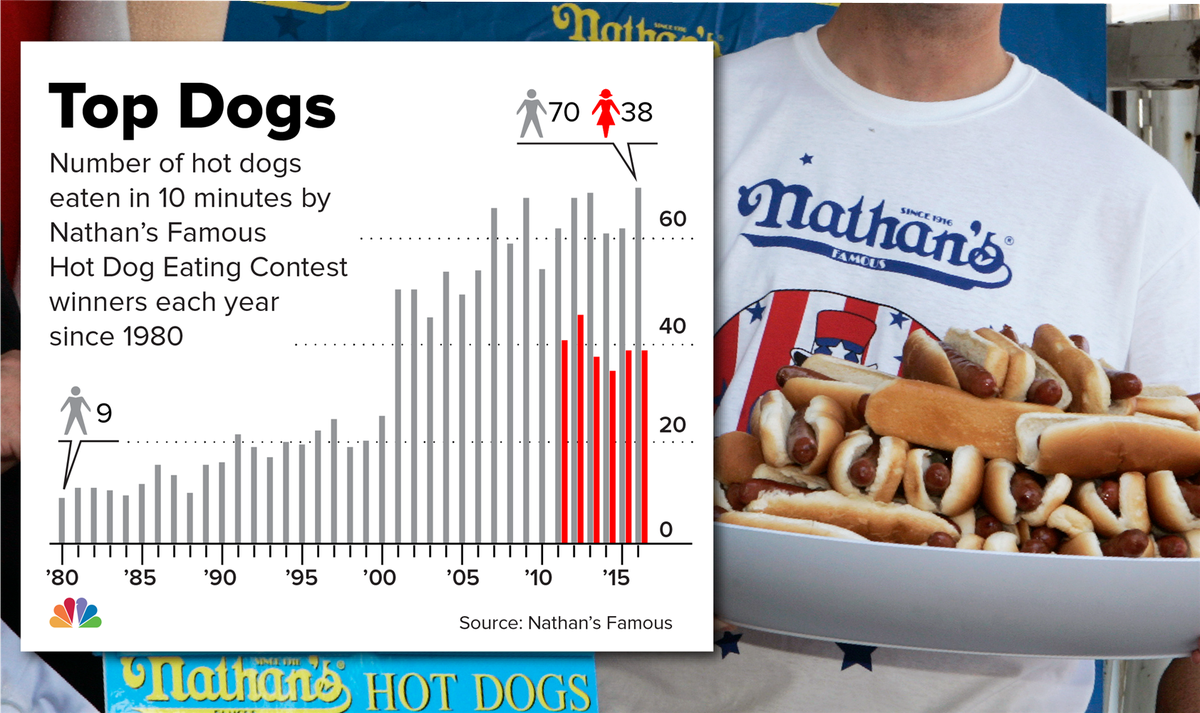 Joey Chestnut downed a record 72 hot dogs in 10 minutes today. Here's how many past Nathan's Famous Hot Dog Eating Contest champs ate:pic.twitter.com/OOHQp9gOzJ