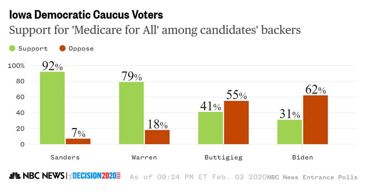 @NBCNews Entrance Poll: Iowa Democrats like 'Medicare for All' — especially Sanders and Warren supporters#Decision2020#IowaCaucuses https://nbcnews.to/31tBAUX pic.twitter.com/HOWPQonIox