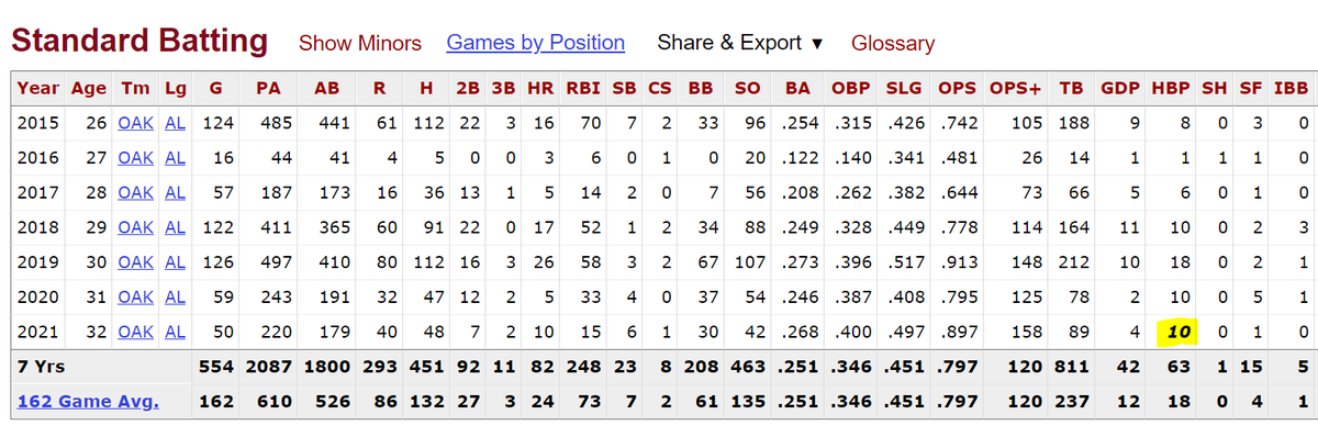 Canha is leading the league in HBP.pic.twitter.com/PmvIfvhQHA