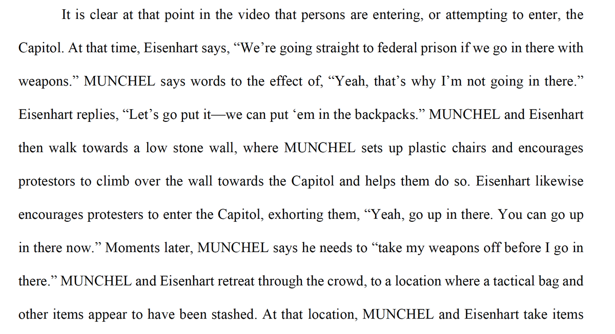 The prosecution memo also reveals that Munchel had asked a friend to hold the phone he wore on his chest during the Capitol insurrection, and that phone was turned over to the FBI along with its revealing video. 2/pic.twitter.com/N8JJjyueSu