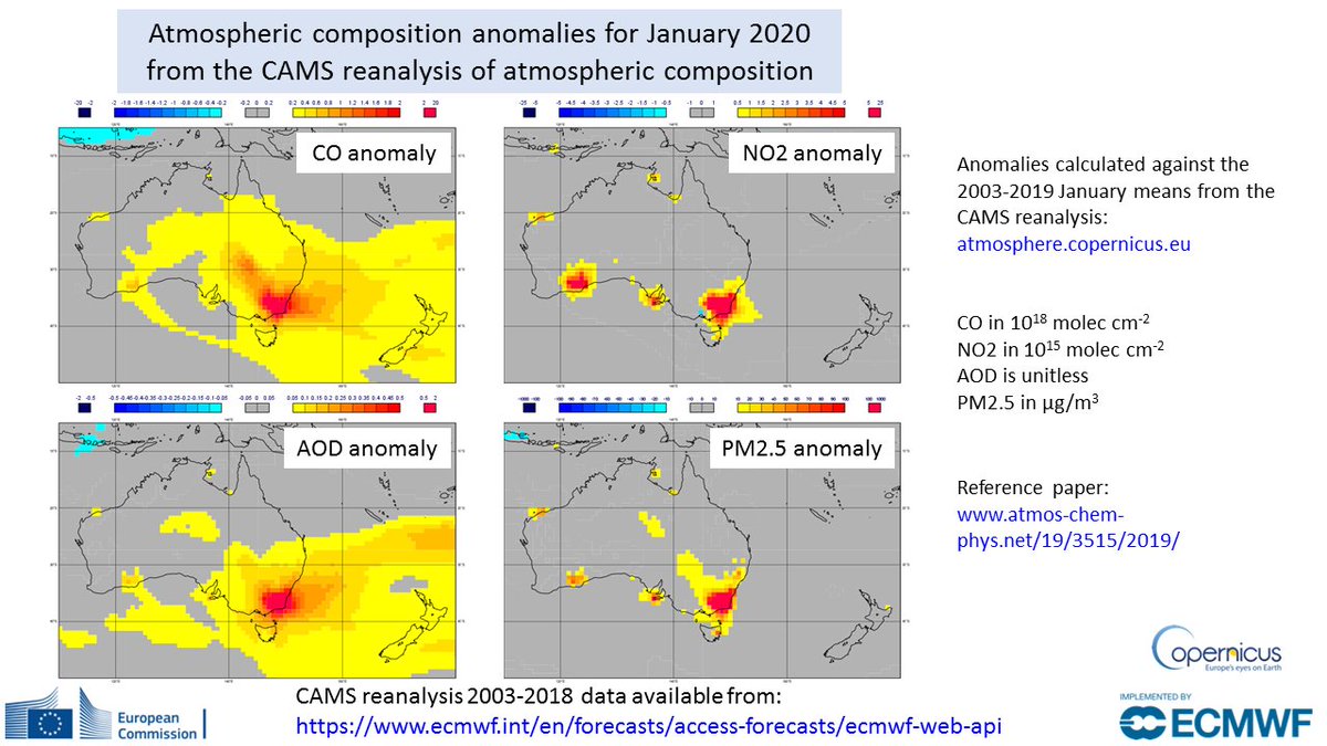 #reanalysis of atmospheric composition produced by@CopernicusECMWF#AtmosphereMonitoring Service@ECMWF show the exceptional situation over Australia#NSWbushfires compared to the 2003-2019 mean.pic.twitter.com/OEp8Ro4ZR5