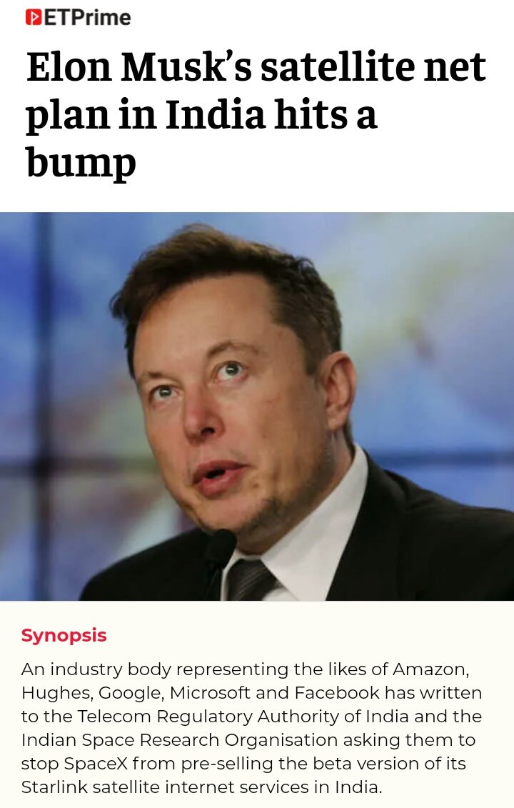 Are some companies afraid of Starlink in India?https://www.teslaclub.in/forum/starlink/amazon-airtel-others-afraid-of-starlink-in-india …