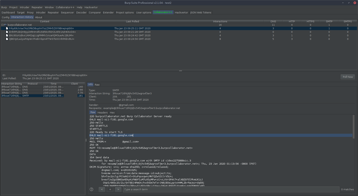 So glad to finally be able to release Collaborator++! It adds the ability to view interactions from all contexts, manually poll for interactions on old contexts, and secure your private servers with a pre-shared key!https://research.nccgroup.com/2020/01/28/tool-release-collaborator/ …