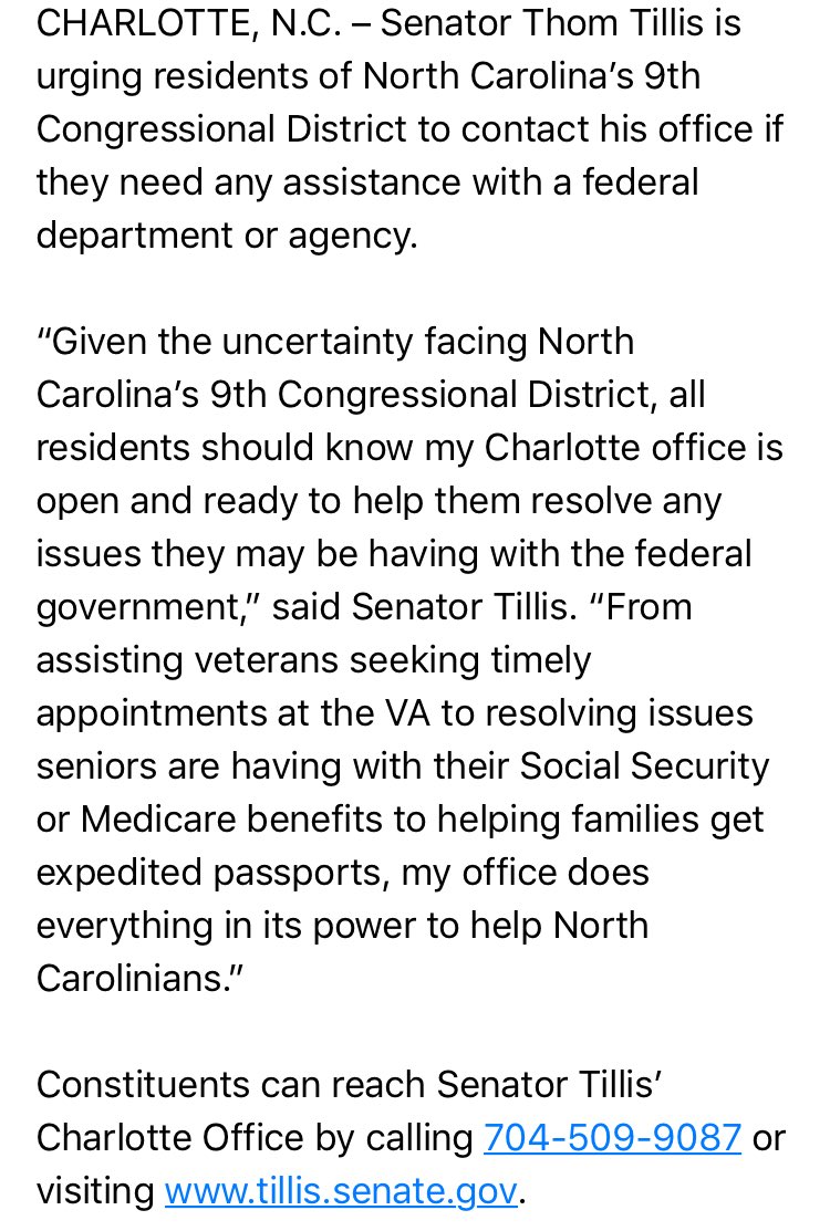 @SenThomTillis telling#NC09 constituents to contact his office in absence of representative#ncpolpic.twitter.com/I3Rnzh2KRy