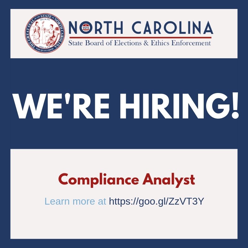 @NCSBE is hiring a compliance analyst. Apply here: https://goo.gl/ZzVT3Y#ncpolpic.twitter.com/RTUO5NNDzo