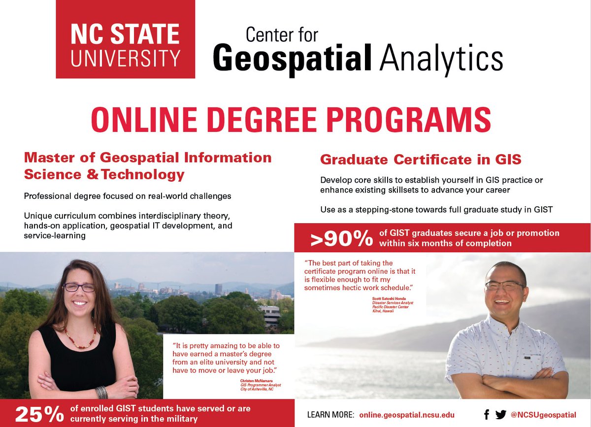 #degree programs, students can earn their professional#masters or graduate#certificate in#GIS completely#online! Applications for Fall 2020 are due 3/1 for international students and 4/15 for US citizens: http://online.geospatial.ncsu.edu@NCStateOnlinepic.twitter.com/uJj8MhpsBn