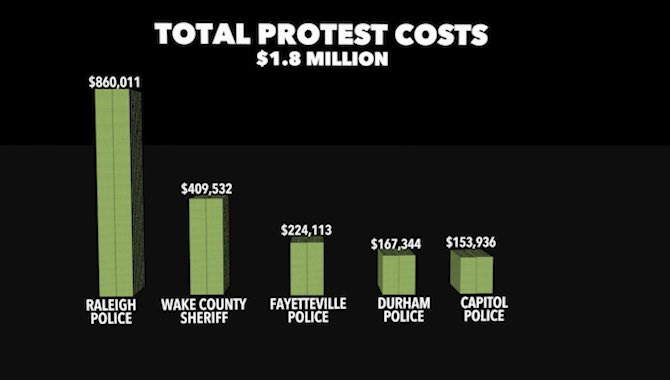 You’re free to protest in America but it doesn’t quite come without a price. Tonight on @ABC11_WTVD at 6 a look into how much police depts. spent in the wake of George Floyd’s death.pic.twitter.com/ID9QQhW6pQ