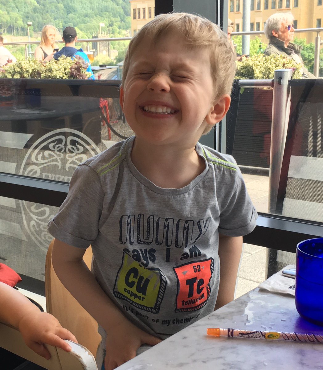 Poor little man has to wear chemistry t-shirts when he goes out for pizza. It's right though, very