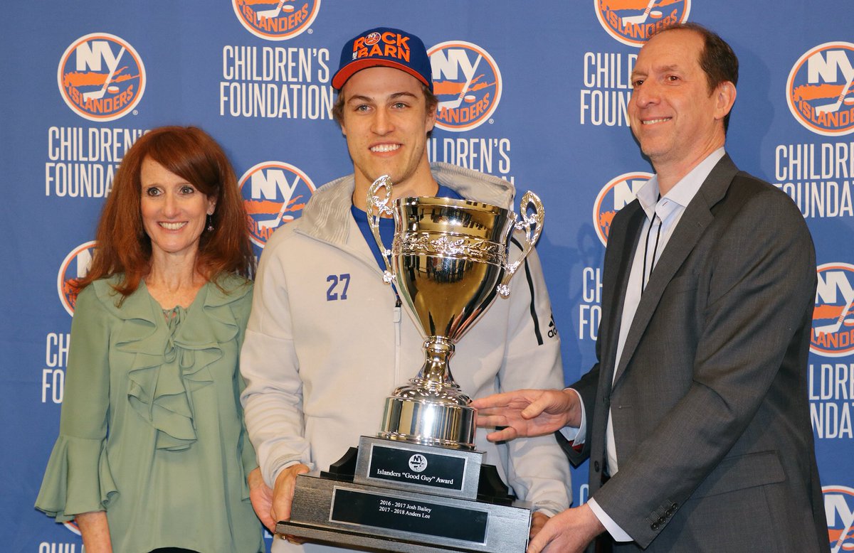 Presenting the trophy to Anders was Islanders reporter @StapeAthletic and Kim Barrish, the daughter of Sid Payne. Congrats@leeberr09!!pic.twitter.com/8KUHcG2pIA