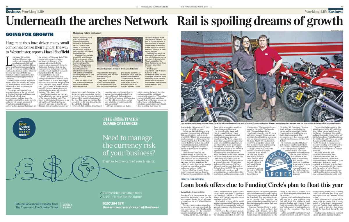 @ArchesGuardians who are meeting with Transport Secretary@JoJohnsonUK today to try and stop Network Rail selling off its arches, threatening the survival of hundreds of small businesses https://www.thetimes.co.uk/article/0f86afe6-6cc8-11e8-bea3-bf1a5a054f3a …@EastEndTrades@NEFpic.twitter.com/XRRCDE0CrG