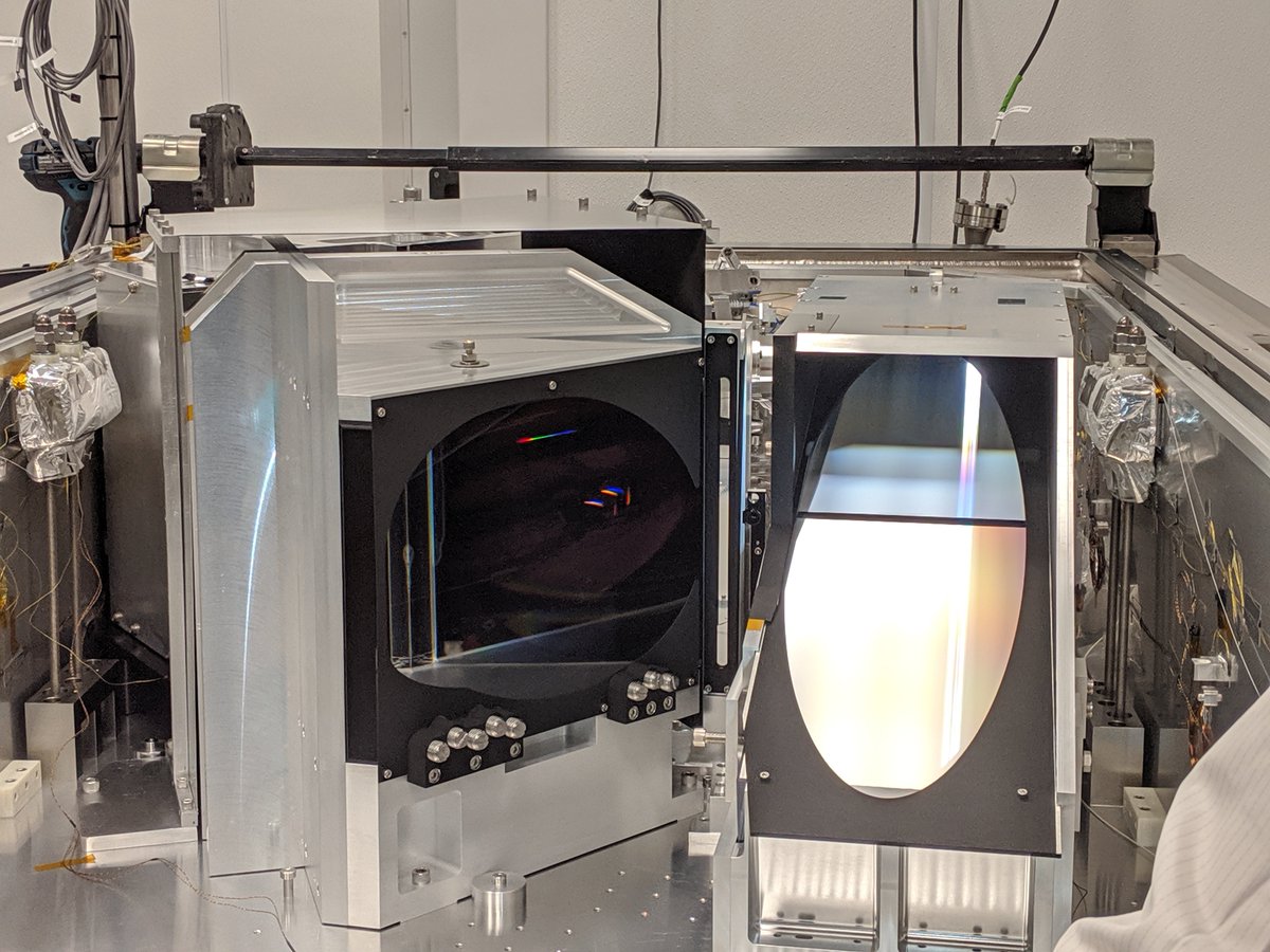 Looking down at the dispersive elements in the white pupil design. All the optical elements look intact and good :-)pic.twitter.com/t21J7qZKUs