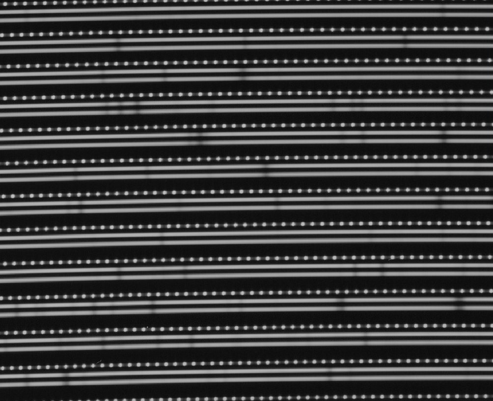 (1/n) NEID's first on-sky spectrum! We see the three fibers illuminated. There is the etalon source in the cal fiber (top) and a blue sky spectrum in our science (middle) and sky (fiber). One can see the pesky telluric (absorption) lines in the sky spectrum as dark bands.pic.twitter.com/YEHK4CWfx8