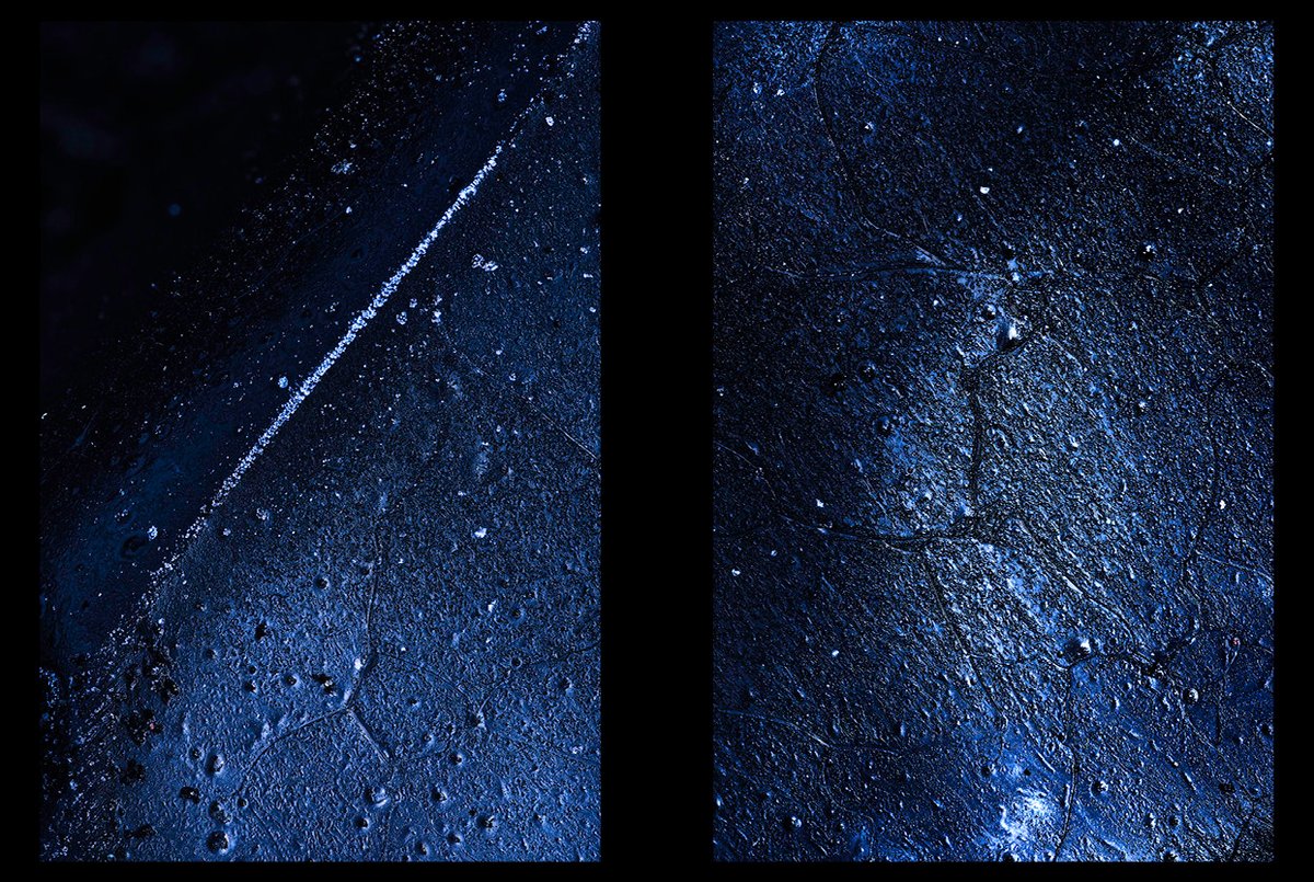 En décidant d'enlever tout problème de profondeur de champs par le focus stacking, je voulais jouer sur les échelles, ne jamais vraiment comprendre de quelle taille est l'objet qu'on regarde. De la glace de quelques centimètres de haut devient un pic, un montagne mystique.pic.twitter.com/zc6eAo2LBr