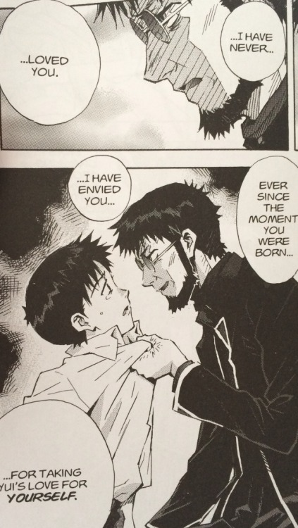 Note that this is manga Gendo only. Gendo in the anime did care about Shinji but couldn't express it beneath his cold exterior because he was just as social inept as Shinji was. And he never bothered to try because he assumed Shinji hated him from the start.
