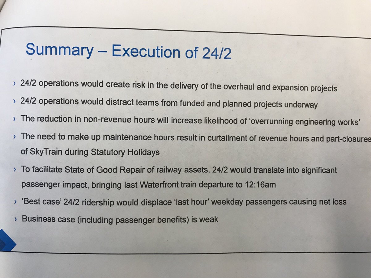 Late night service report says 24 hour service not feasible “simply not an option” due to several factors: not enough time for maintenance, puts expansion plans at risk, reduced maintenance time risks safety, would have to reduce hours Sun-Thurs to make up maintenance hourspic.twitter.com/omnpGvtz7o
