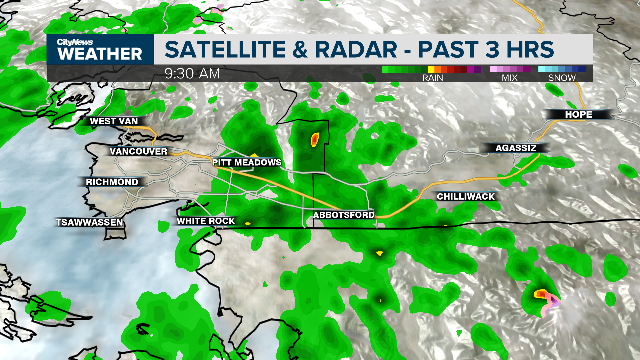 #doppler radar imagery across Metro#Vancouver & the#FraserValley shows the downpours are long gone, but a few lighter showers continue to stream in from the SSE. It will be a drier afternoon pattern, featuring lots of stubborn cloud cover.@NEWS1130@BT_Vancouverpic.twitter.com/koJr4JI0eY