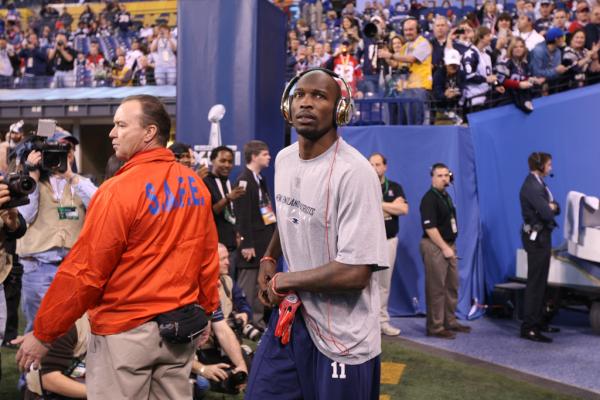 GOLD Beats by Dre headphones?! Only @ochocinco. #SB46 #nfltotalaccesspic.twitter.com/pZ73vi16