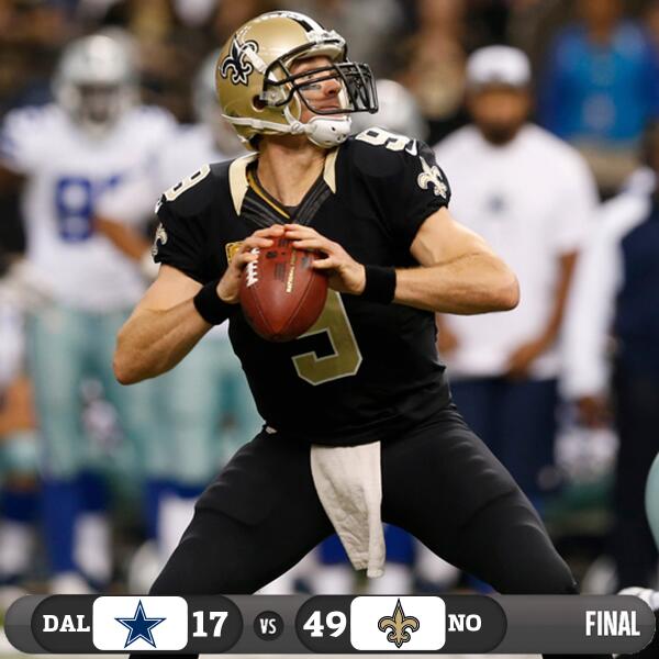 @nfl: FINAL@dallascowboys 17@Saints 49#DALvsNO pic.twitter.com/yQwipJTevJ” IDEC THOUGH BC MMMMMmmmm DREW
