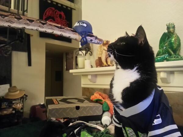 @nfl meet Big Red Tail Bryant and Meowshawn Lynch. Some of the biggest #12thPet Fans of @Seahawks