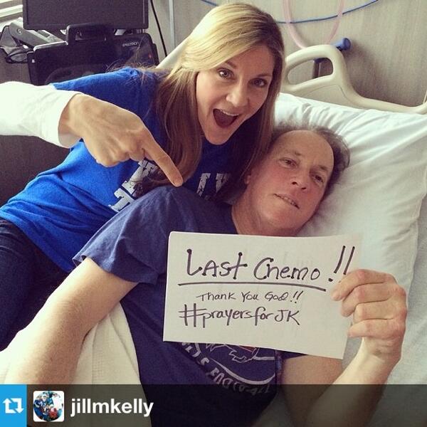 “@nfl: "Jim is DONE with chemotherapy! 4 more radiation treatments to go!" -@HJKforever #PrayersForJK pic.twitter.com/f3UBFEeTYF”