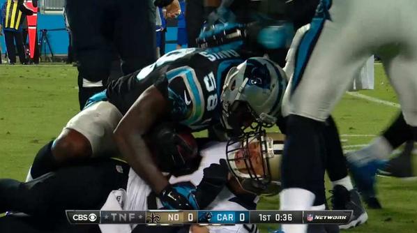 @nfl: Thomas Davis & Jimmy Graham's helmets get stuck following tackle#NOvsCAR pic.twitter.com/iQFSvs6otJ” Something you don't see often! Lol