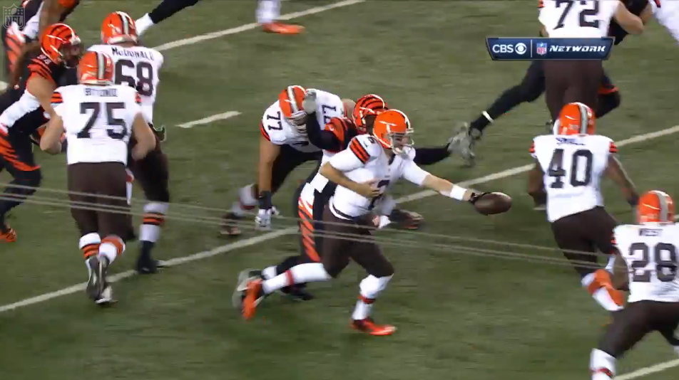 @nfl: Geno Atkins was in the backfield before Hoyer could hand the ball off. http://at.nfl.com/18TuBrb pic.twitter.com/Snch952Pjc” scoreboard