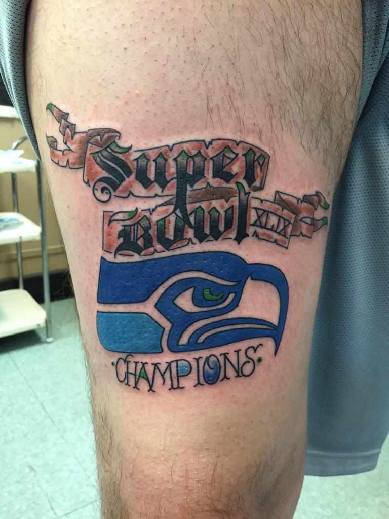 @nfl: Why wait for#SB49 when you can tattoo "Back-to-Back Champs" on your body right now? (via@ocashughjhazz) pic.twitter.com/Mr9ZX62fH5” wow