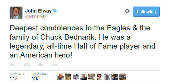 @nfl: The NFL community remembers the life of@Eagles legend Chuck Bednarik: http://at.nfl.com/1dVSW52 pic.twitter.com/xYaC2VrUQs" thank you