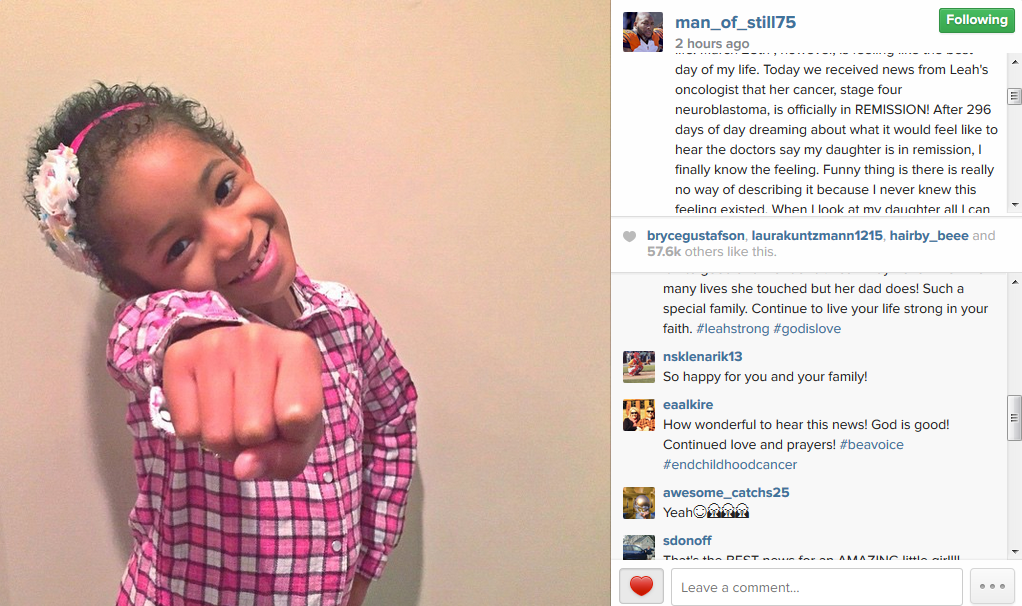 @nfl: ICYMI: Leah Still's cancer has entered remission (via@Dev_Still71) http://at.nfl.com/l46nnC1#LeahStrong pic.twitter.com/m9N4GueuD0”
