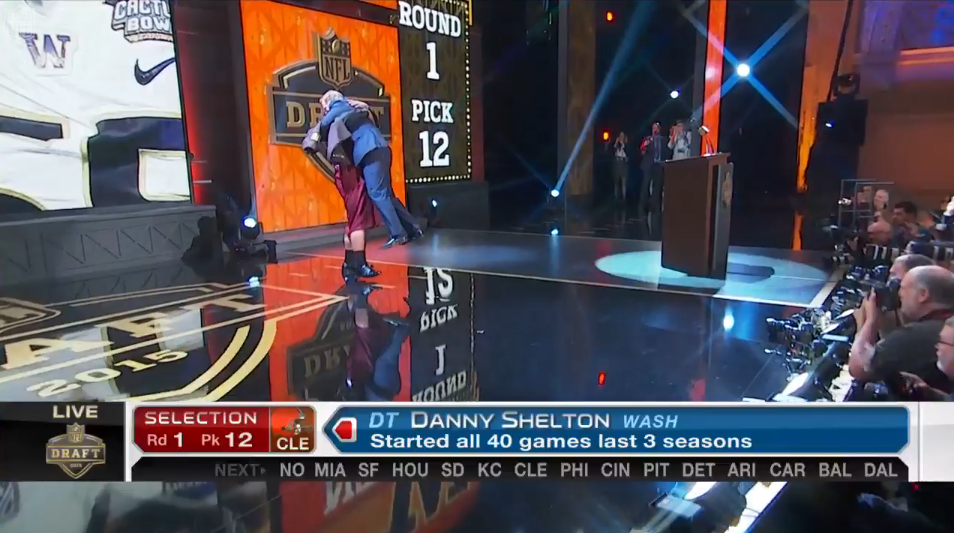@nfl: Shake hands? Bear hug? Well..@Danny_Shelton55 picked@NFLCommish UP. WATCH: http://at.nfl.com/ZTvYBP4#NFLDraftpic.twitter.com/2mJGp98MV5