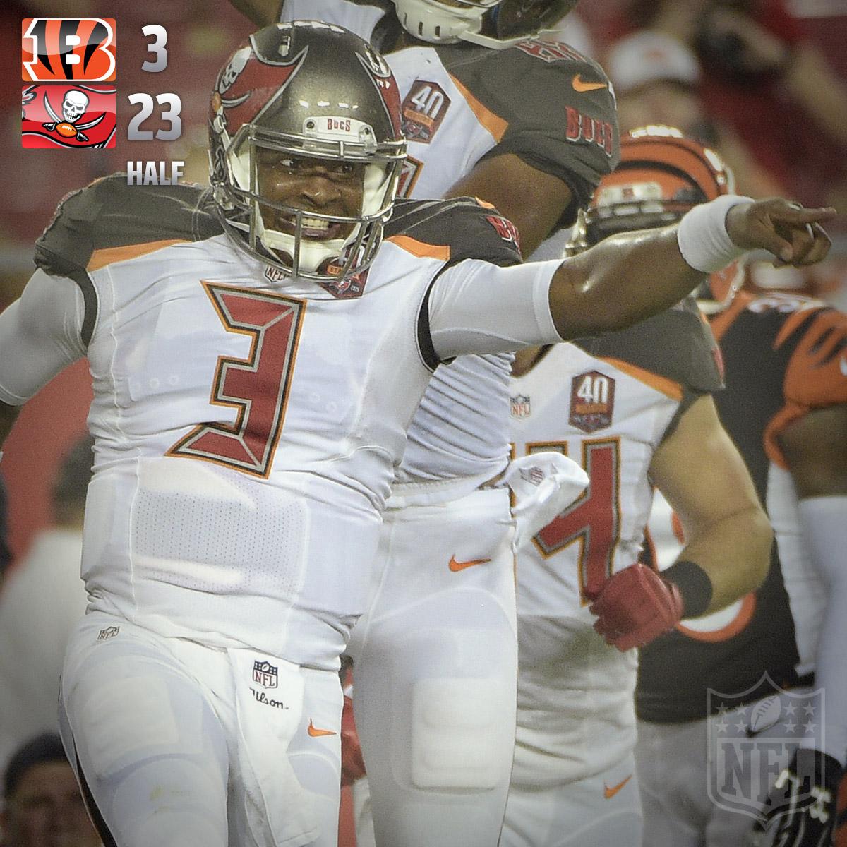 @NFL: HALFTIME:@Jaboowins: 8/13, 90 yards, 0 TD@andydalton14: 6/13, 46 yards, 2 INT#CINvsTB. @BeezyBGarnerThanks. Twitter will use this to make your timeline better. UndoUndo