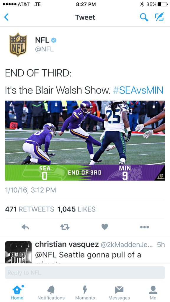 @NFL Blair Walsh Project in airing.Thanks. Twitter will use this to make your timeline better. UndoUndo