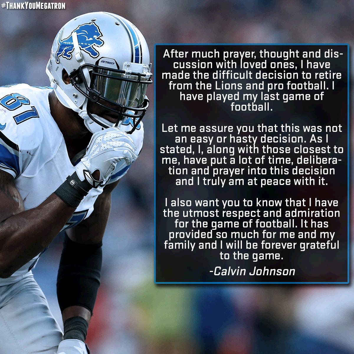 @NFL#ThankYouMegatron I loved watching you play every Sunday. You definitely won't be easy to replaceThanks. Twitter will use this to make your timeline better. UndoUndo