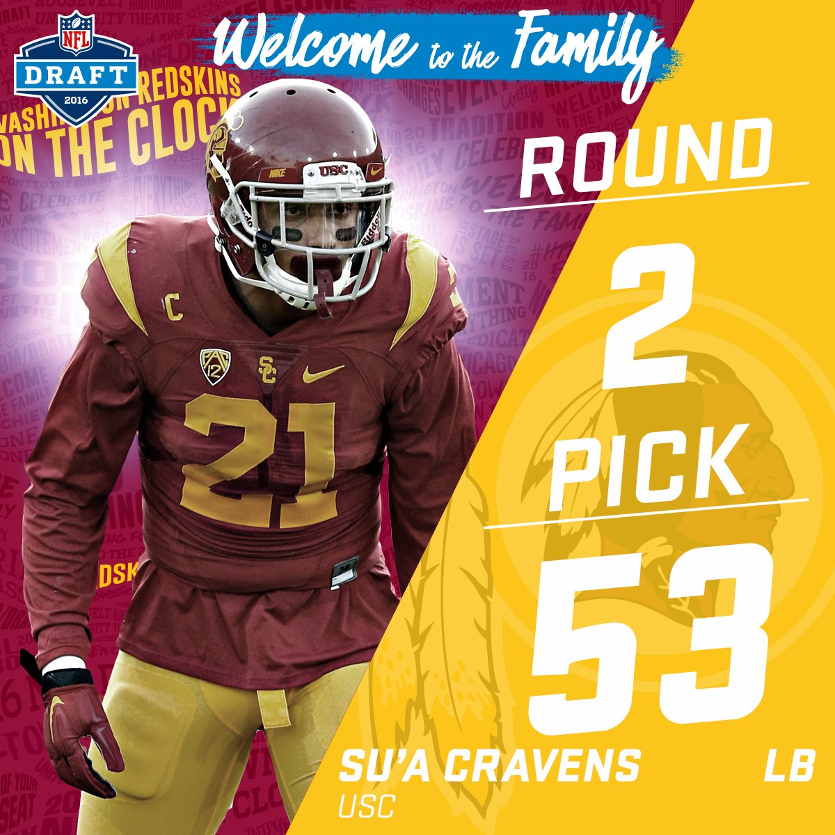 @NFL: With the #53 pick in the 2016#NFLDraft, the@Redskins select LB Su'a Cravens! pic.twitter.com/zJY6UAOhMV”
